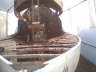 Also musste alles was noch irgendwie drin war ...heraus. Die komplette Einrichtung und selbst die Kajüte kam ab. Wobei auch der Entschluss wieder gefasst wurde, aufgrund der morschen Kajütstreben ... nach dem Strahlen einen komplett neuen Kajütaufbau zu spendieren.